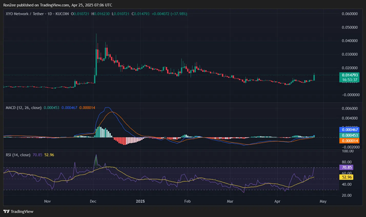 XYO Network (XYO) has just recorded a remarkable growth, with its token price increasing by more than 50% in just one day, thanks to a combination of exchange listing momentum and significant advances in technological development. The altcoin climbed to a short-term high of $0.015 on the morning of April 25 in the Asian market, bringing its total market capitalization to over $207 million.